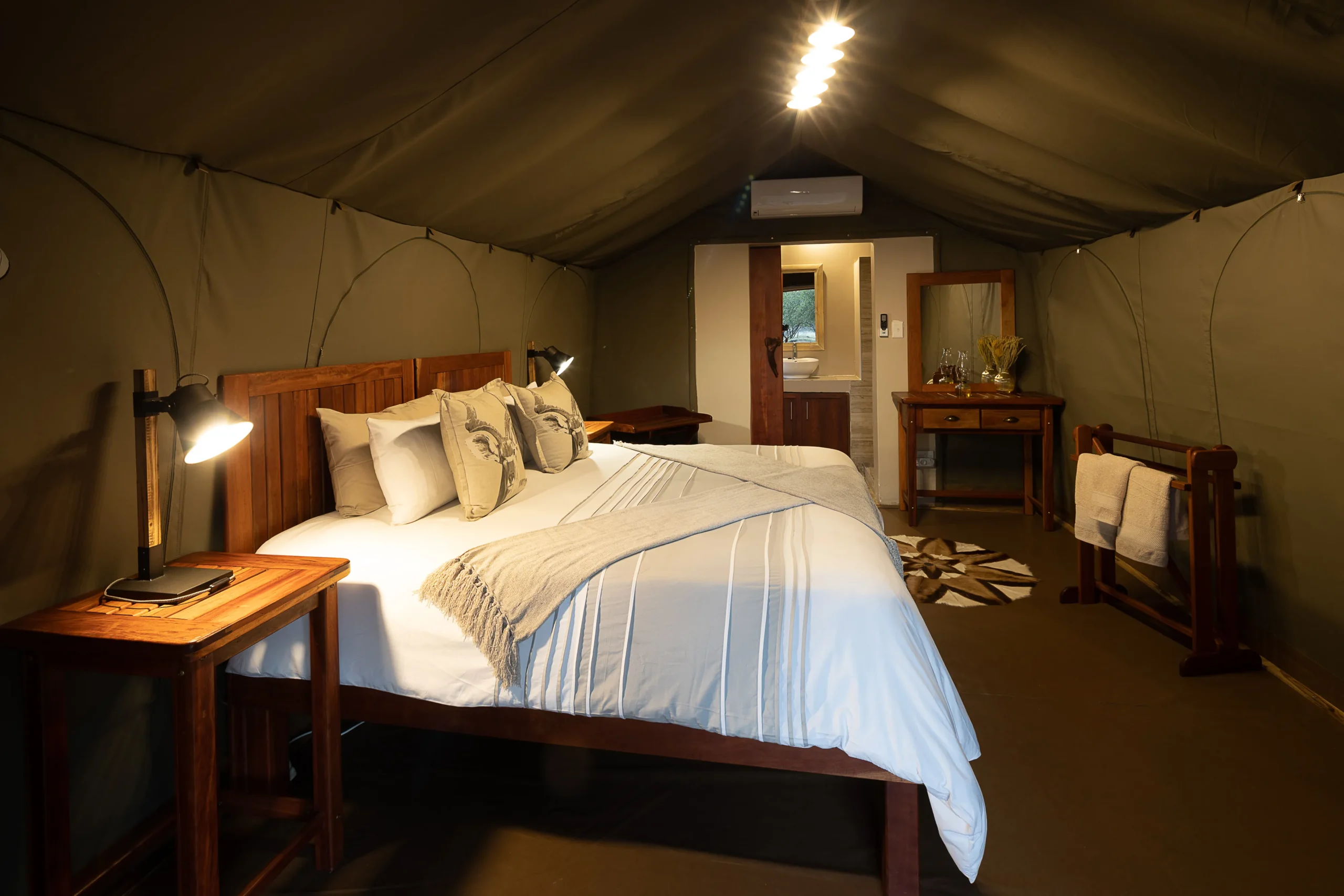 To maintain maximum comfort, each tent is equipped with air-conditioning, which keeps the interior cool and comfortable, regardless of the weather outside. Guests can relax and unwind in the cool comfort of their luxurious tent, taking in the sights and sounds of the surrounding wilderness. Limited WiFi is available at the lodge, allowing guests to stay connected while enjoying their escape from the hustle and bustle of daily life.